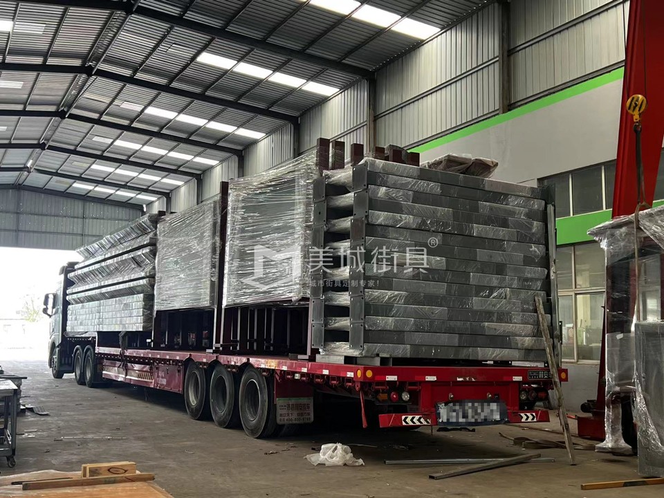 2023.6.30美城街具供应新疆公交站台发货记录,以下是该批公交站台发货现场图。